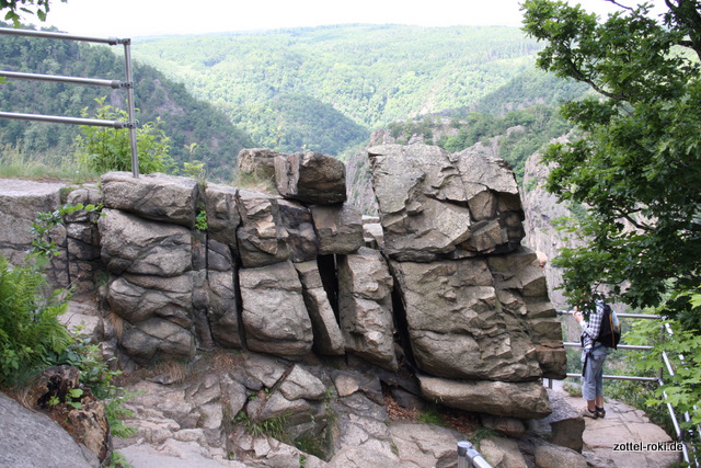 Der Blick in das wilde Bodetal ist einfach nur atemberaubend schön, findet Herrchen – Frauchen ist die Höhe nicht ganz egal…