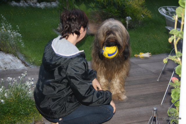 Und dann hat Indi von Roki gehört, dass er entweder hütet oder frisches Futter verschlingt, Spielen ist aber nicht sein Ding. Schade meinte Indi und guckte Roki-Frauchen fragend an: