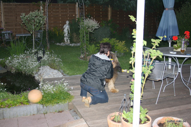 Als wir nach einem kleinen Spaziergang wieder zu unseren Gastgebern zurück kamen, da wartete schon Indi ganz sehnsüchtig auf Roki.