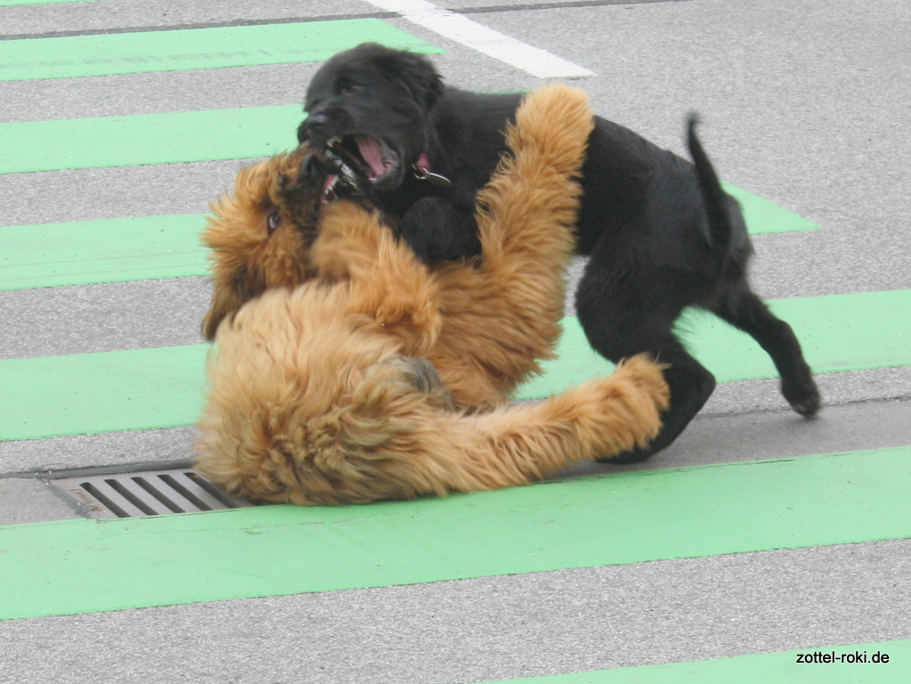Und alle waren froh als wir wieder am Parkplatz waren, denn nun konnten wir ohne Leine toben. Nur warm war’s, aber Pennen kann ich zu Hause. Lotti hat bestimmt Halsweh vom rumbrüllen….