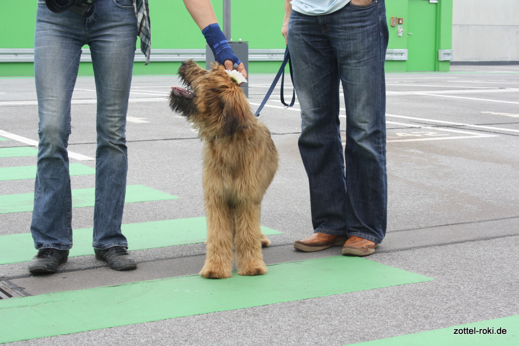 Der Fahrstuhl brachte uns dann auf’s Dach. Hier durften alle herumtoben und sich ein bissel entspannen. Die M. und Herrchen tuschelten so leise… das selbst ich nichts verstand – und ich habe echt große Löffel. ![]()